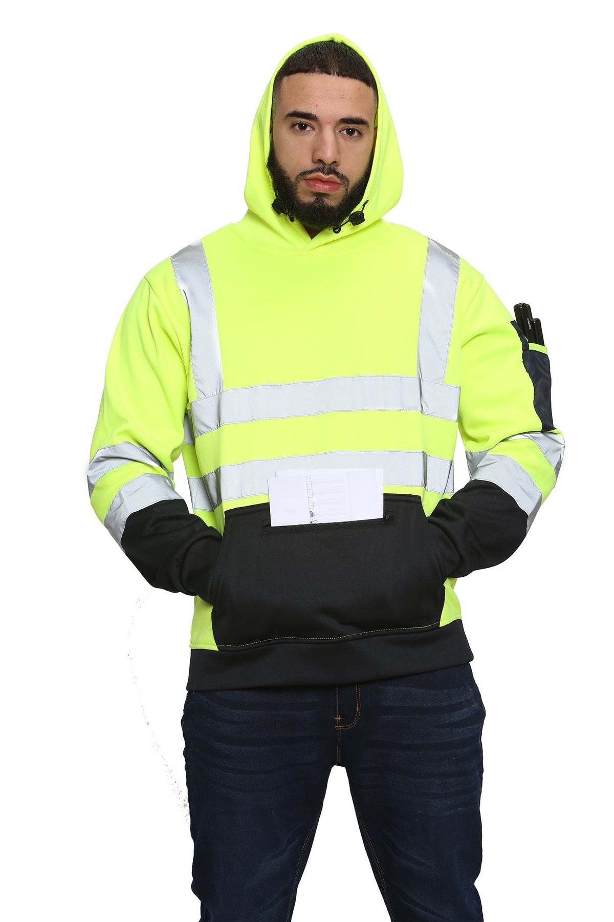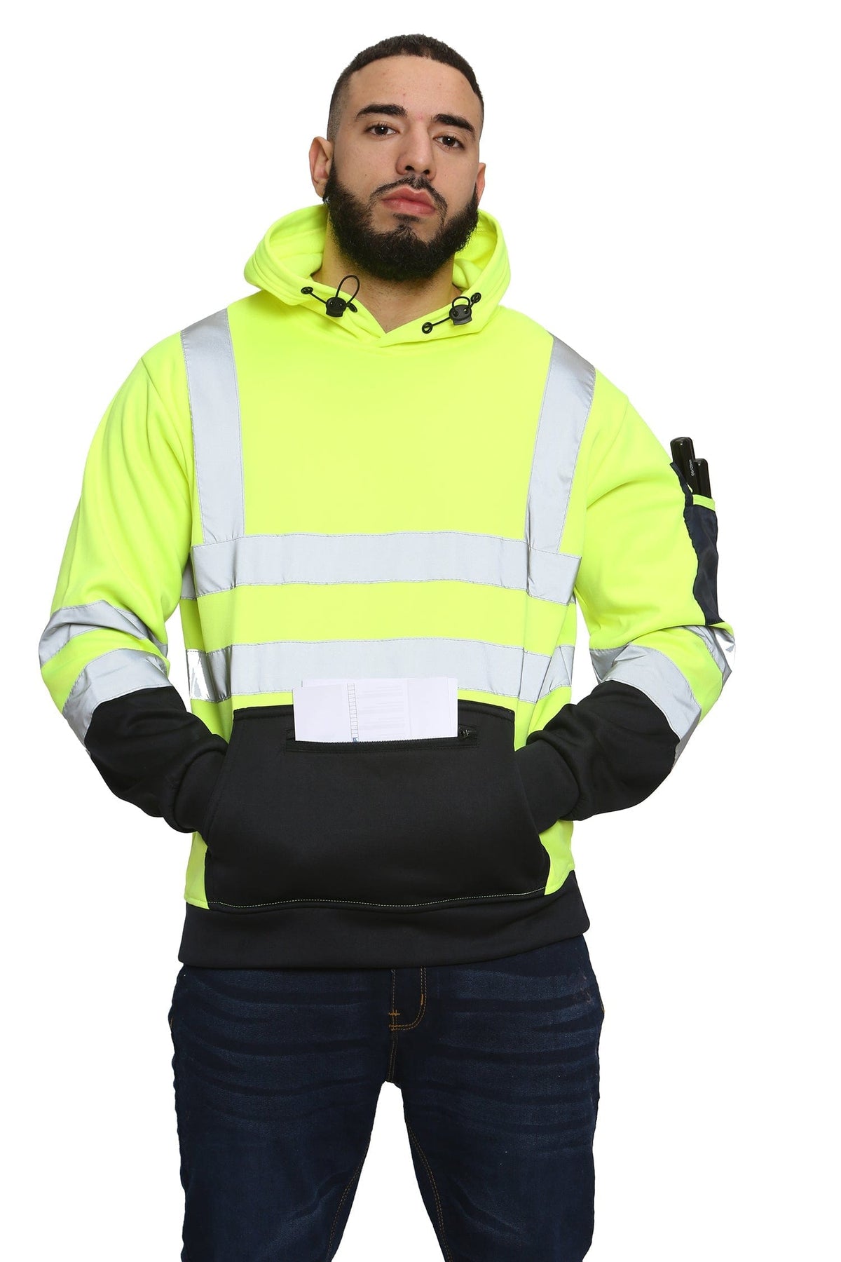 High Vis 3 Zip Pockets Pullover Hoodies - Yellow/Navy