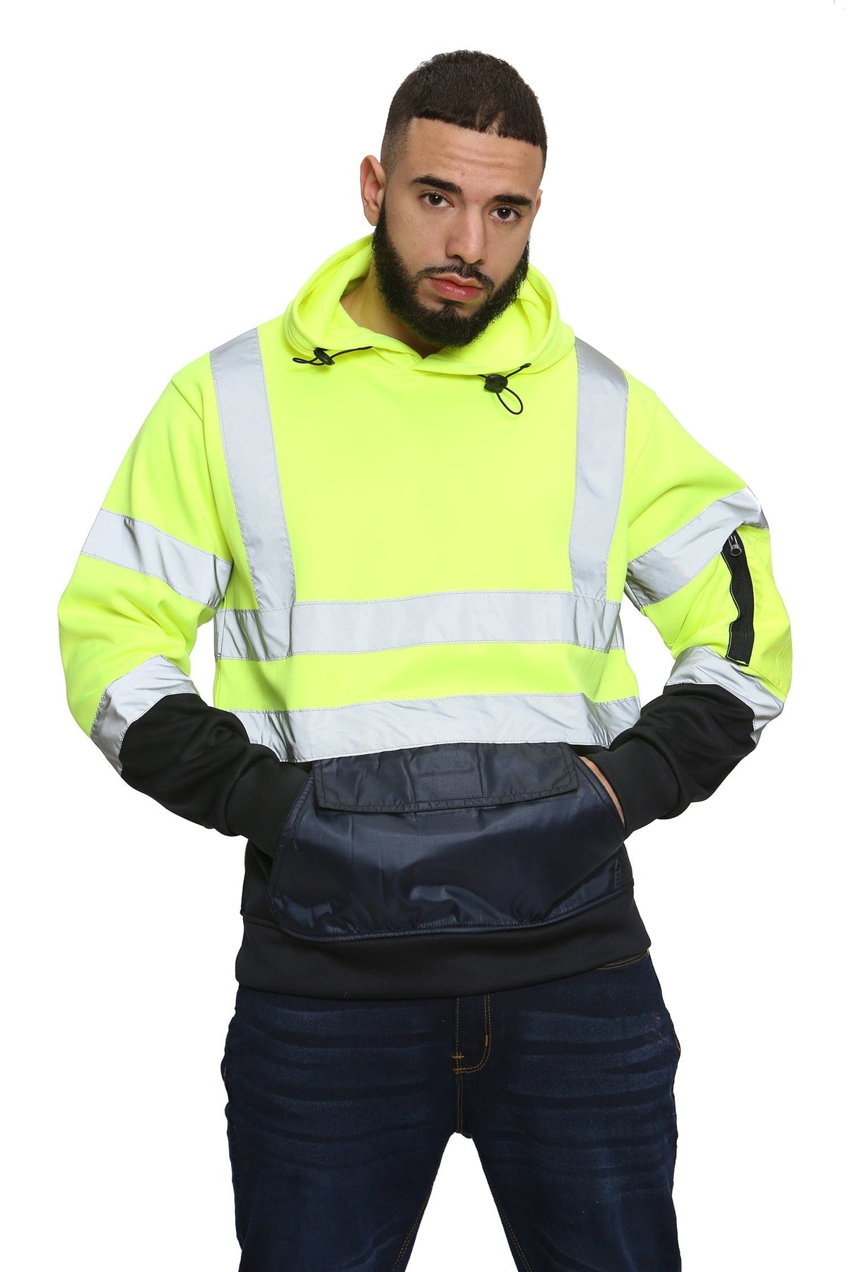High Vis 3 Flap Pockets Pullover Hoodies - Yellow/Navy